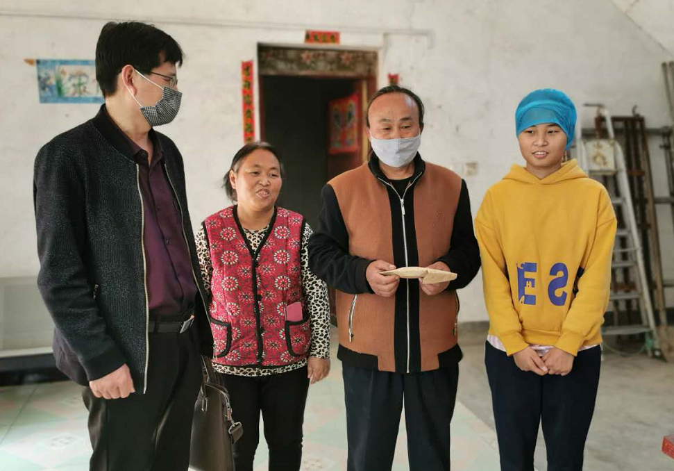 4月24日上午,十大买球的正规网站贾涛书记、杨文贞主任和学院部分老师代表前往驻马店看望罹患脑瘤的王晓巧同学,给王晓巧同学送去了学院师生九千八百余元捐款和礼品,王晓巧同学春节期间因头晕去医院就诊,被驻马店市第一人民医院诊断出脑瘤,需立即手术,虽经两次开颅手术,晓巧同学依然乐观,坚强,前去看望的老师看到晓巧同学的精神状态和恢复情况,特别高兴,也被深深感动!贾书记转达了十大买球领导、老师和同学们对她的关心关爱,鼓励晓巧同学继续保持乐观心情,积极配合医生进行后续治疗,争取早日重返校园!