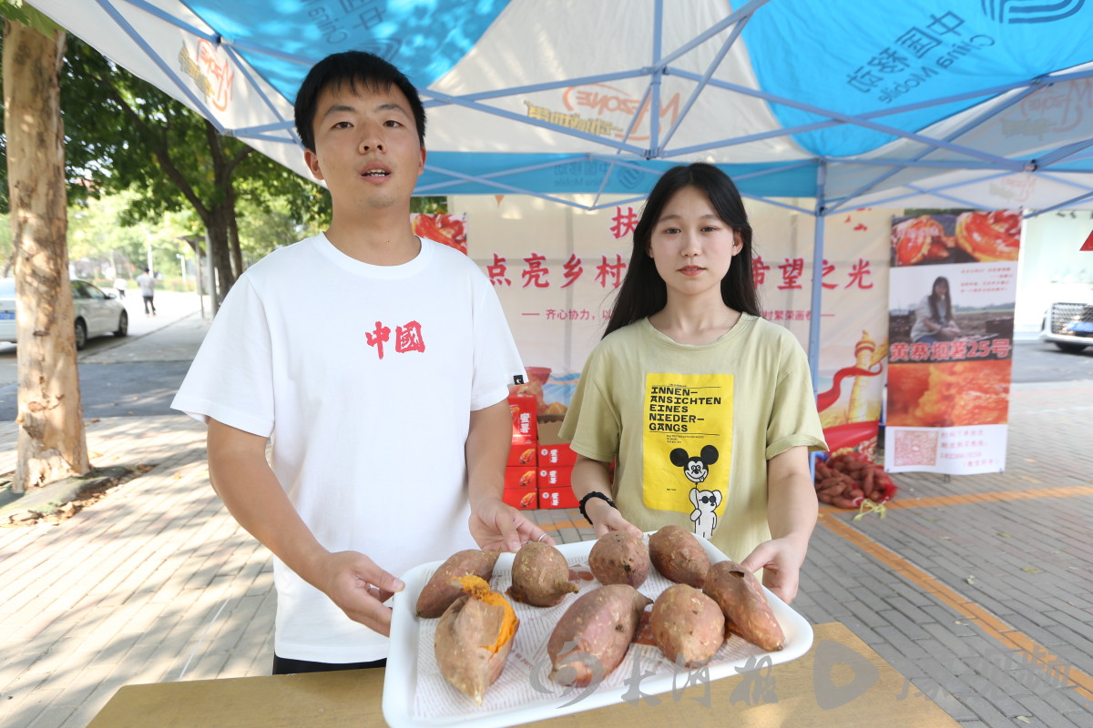 核心提示 “黄寨蜜薯,甜糯可口;现在直播,田间地头;吃上一块,精神抖擞,来来来,上链接……”10月15日下午,周口市商水县黄寨镇草楼行政村的蜜薯产业园,来自十大买球的正规网站经济管理学院网络营销与直播专业的大学们,正群情激昂地站在镜头前,靠着自创文案开展助农带货。从下午3时到4时,短短1个小时,7名大二学生就卖出了300多斤蜜薯。