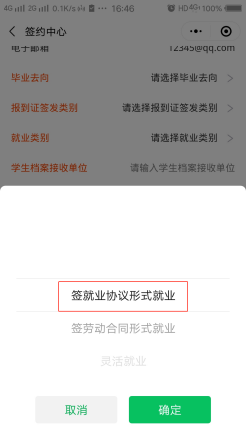 就业类别选择【签就业协议形式就业】-【已签协议书备案】,上传协议书照片,点击【确认签约】提交审核。