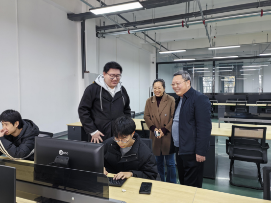 在实训现场,李明臣等与学生亲切交谈,询问他们的工作、学习及生活情况。
