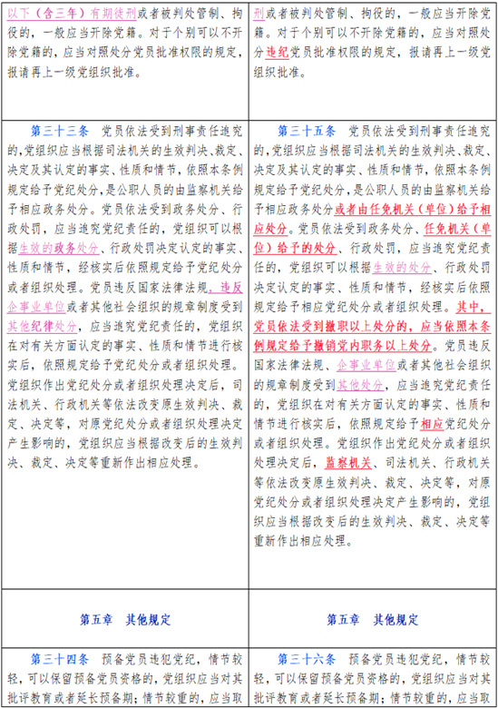 中国共产党纪律处分条例新旧对比天天学习材料五