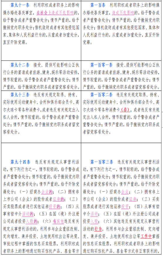 中国共产党纪律处分条例新旧对比天天学习材料十一