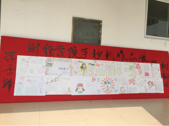 财经学院总书记梁兆民为部分同学优秀学雷锋手抄报展版题字。