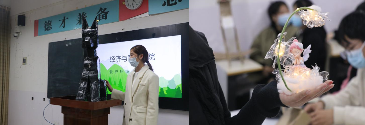 为增强我院广大同学的环保意识,我院于2022年11月12日下午在4203教室举行“爱护环境,变废为宝”主题活动。21级、22级在校学生积极参与,由22级电子商务2班张祥留担任本次活动的主持人,现场观众担任评委进行投票。